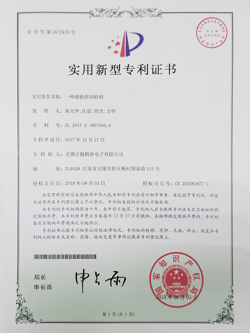 一種磁鐵拆卸機構(gòu)實用新型專利證書