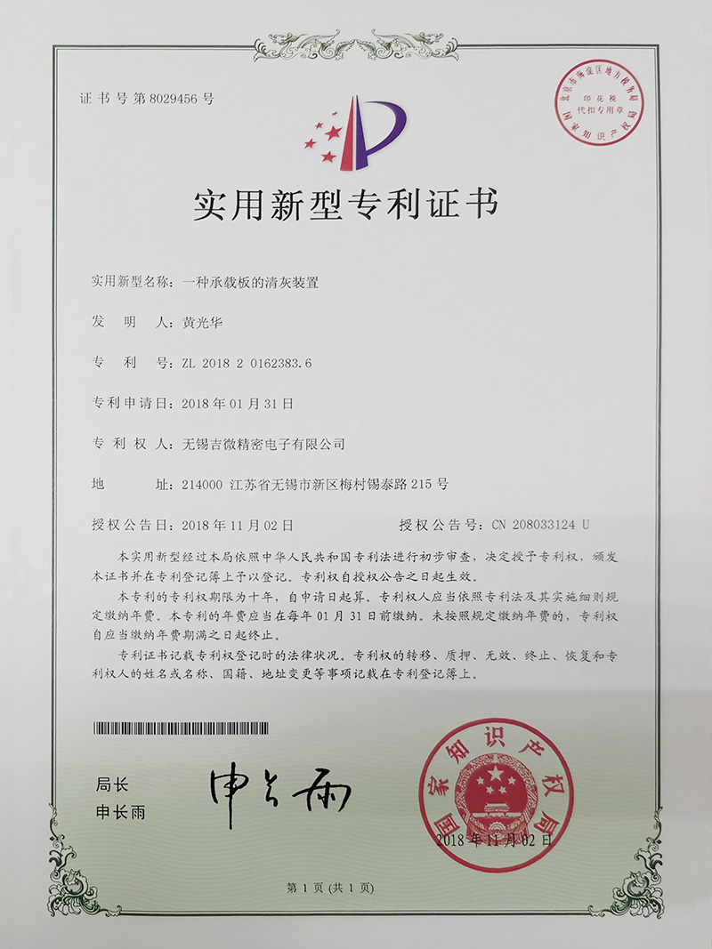 一種承載板的清灰裝置實(shí)用新型專利證書